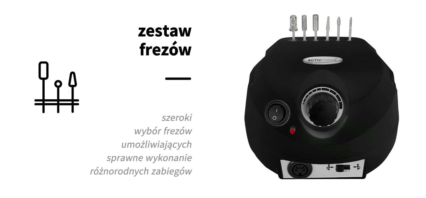 Funkcjonalna frezarka Activ Power J202 jest urządzeniem, które świetnie sprawdzi się podczas wykonywania manicure i pedicure. Pozwala na sprawne przygotowanie paznokci pod dalsze zabiegi i znacznie ułatwia usuwanie pozostałości poprzednich stylizacji. Dobre wyważenie głowicy, przemyślane funkcjonalności oraz mnogość dostępnych opcji sprawiają, że frezarka doskonale sprawdzi się w użytku profesjonalnym.