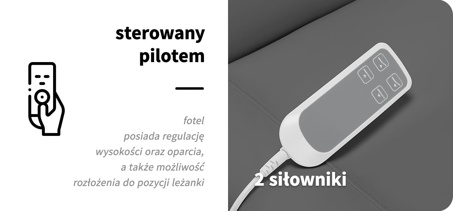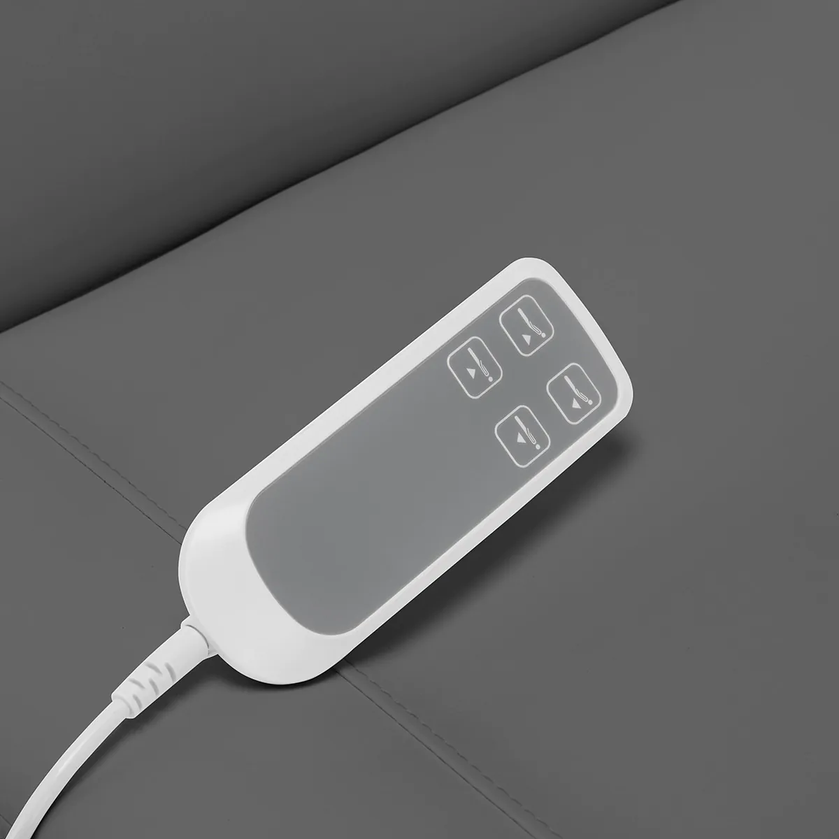 Przy użyciu prostego w obsłudze pilota fotel płynnie dostosowuje się w 2 płaszczyznach – posiada regulację wysokości oraz oparcia. Siedzisko można ustawić tak, by znajdowało się na wysokości od 61 cm do 84 cm, a przy całkowitym rozłożeniu fotel osiąga długość 2 m. Wymiary te pozwalają na łatwe korzystanie ze sprzętu osobom o różnym wzroście i umożliwiają dostosowanie go do aktualnie wykonywanego zabiegu oraz indywidualnych potrzeb, co wpływa zarówno na komfort użytkownika, jak i osoby wykonującej usługi. Uchwyty znajdujące się po obu stronach siedziska pozwalają na odwieszenie pilota tak, by znajdował się zawsze pod ręką.