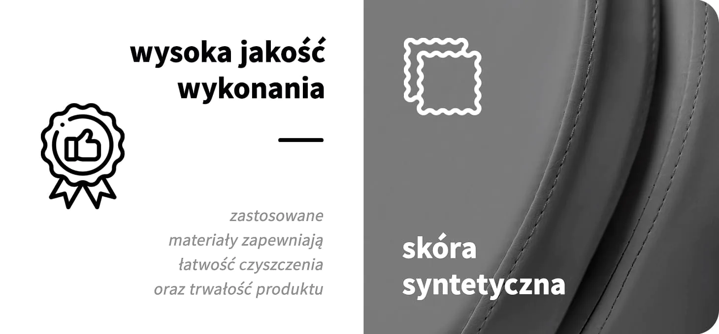 Fotel wypełniony jest wyprofilowaną pianką i pokryty przyjemną w dotyku skórą syntetyczną w odcieniach szarości. Użyty materiał sprawia, że sprzęt jest łatwy w czyszczeniu, a także odporny na wilgoć i wybrane środki dezynfekcji. Solidna podstawa wykonana z trwałego materiału w odcieniach bieli zapewnia stabilność w trakcie zabiegów. Odpowiednio wyprofilowane obszycia nadają fotelowi stylowy wygląd i sprawiają, że siedzisko jest ergonomiczne. Minimalistyczny, prosty design i klasyczna kolorystyka pozwalają mu wpasować się w każde wnętrze.