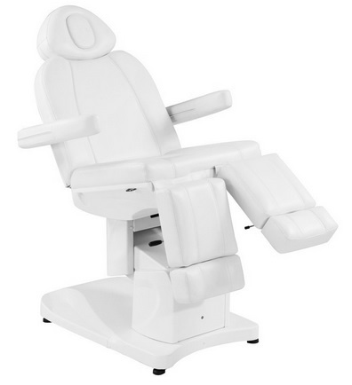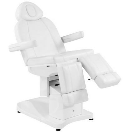 Fotel kosmetyczny elektryczny idealnie nadający się do gabinetów kosmetycznych oraz salonów SPA. Dzięki niezależnym silnikom umożliwia regulację fotela w 3 płaszczyznach za pomocą pilota oraz manualnie podnóżków dając możliwość przeprowadzenia zabiegów na twarz oraz ciało. Używając pilota możemy dostosować wysokość fotela, nachylenie oparcia i podnóżków a także ustawić siedzisko w pozycji kołyski.