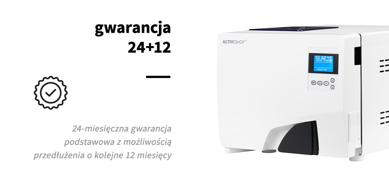 Autoklaw Lafomed Premium Line podlega 24-miesięcznej gwarancji. Warto tutaj wspomnieć, że gwarancja nie jest uzależniona od ilości cykli autoklawu. Istnieje możliwość przedłużenia gwarancji o kolejne 12 miesięcy pod warunkiem przejścia odpłatnego przeglądu technicznego w autoryzowanym serwisie przed upłynięciem terminu obowiązywania gwarancji podstawowej. Jest to opcja, która dotyczy urządzeń zakupionych od 22.08.2022. Dodatkowo dołączany jest również paszport techniczny gratis!