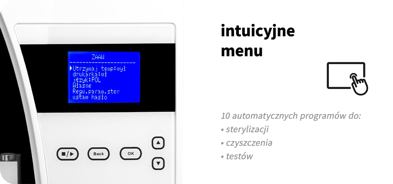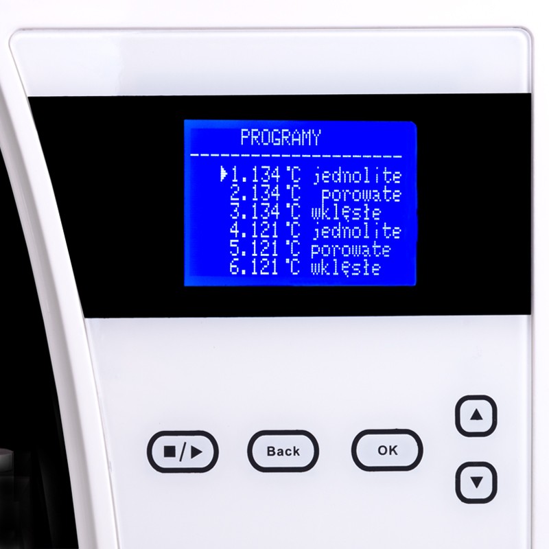 Autoklaw posiada 8 całkowicie automatycznych programów sterowanych dotykowym panelem z przyjaznym interfejsem w języku Polskim!
