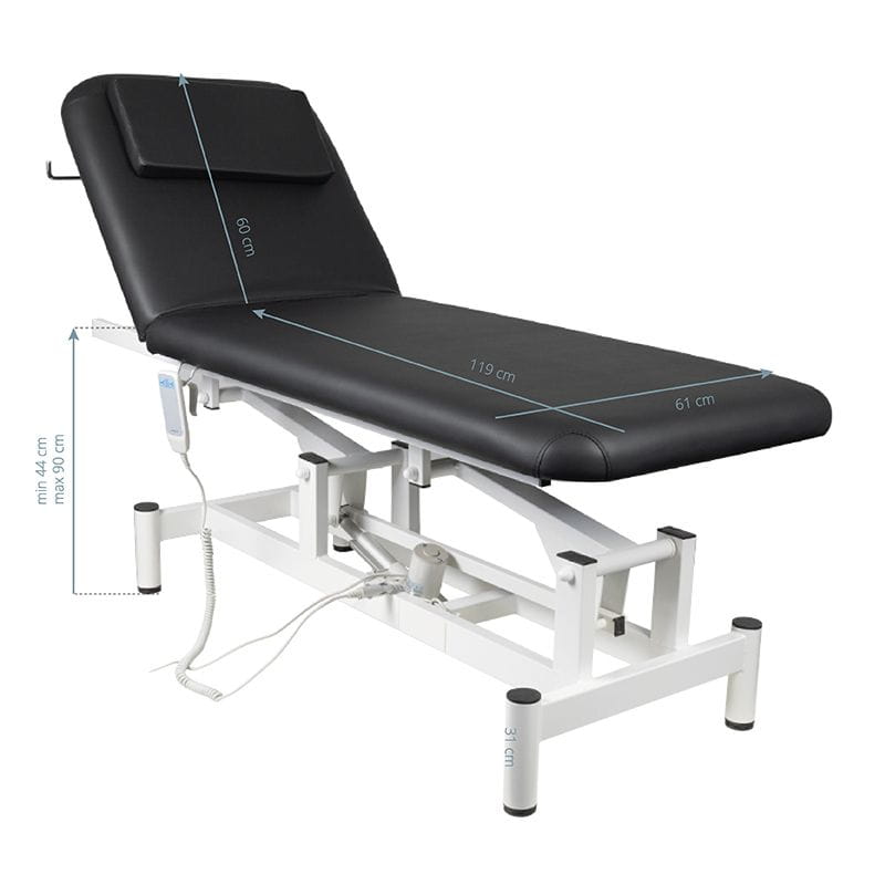 Leżanka w szczególności przeznaczona do zabiegów fizjoterapeutycznych jaki i gabinetów kosmetycznych. Wyposażona w 1 silnik dzięki temu wysokość regulowana jest elektrycznie, regulacja nachylenia oparcia jest odbywa się manualnie. Zagłówek stanowi poduszka zaślepiająca otwór na twarz. Posiada wyjątkowo stabilną konstrukcję oraz komfortowy blat roboczy.