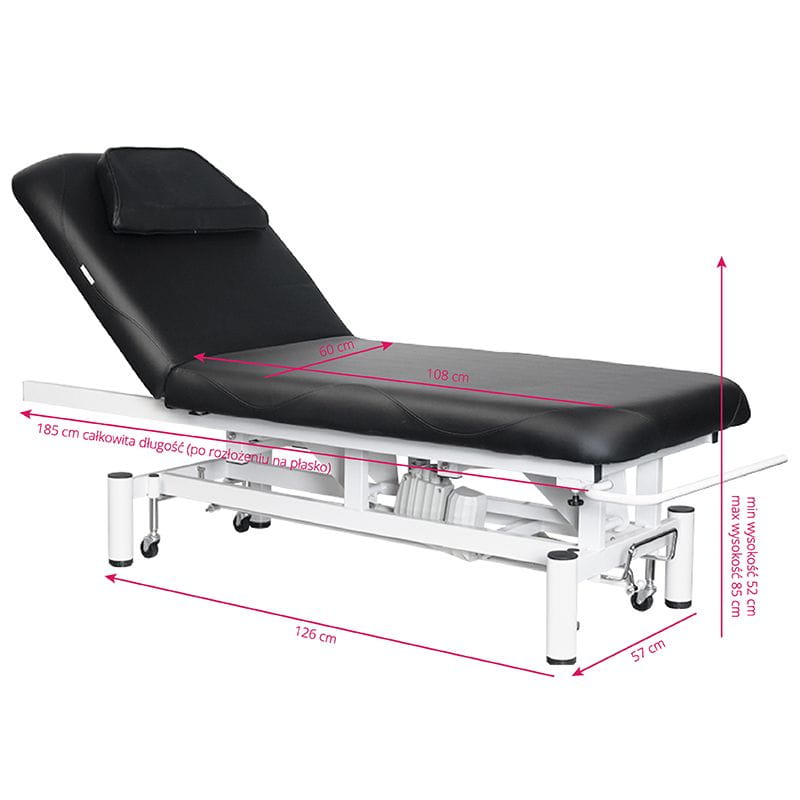 Leżanka o wysokiej wydajności, w szczególności do zabiegów fizjoterapeutycznych. Wyposażona w 1 silnik dzięki temu wysokość regulowana jest elektrycznie, oparcie i nachylenie są regulowalne manualnie. Zagłówek stanowi poduszka z otworem odpowietrzającym.