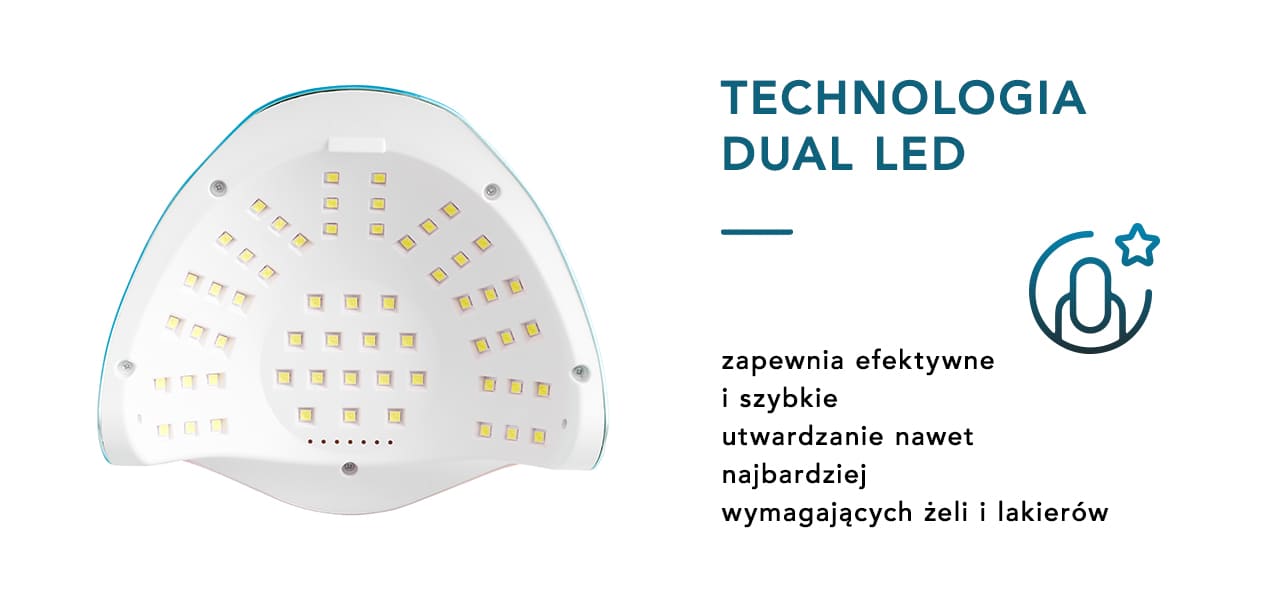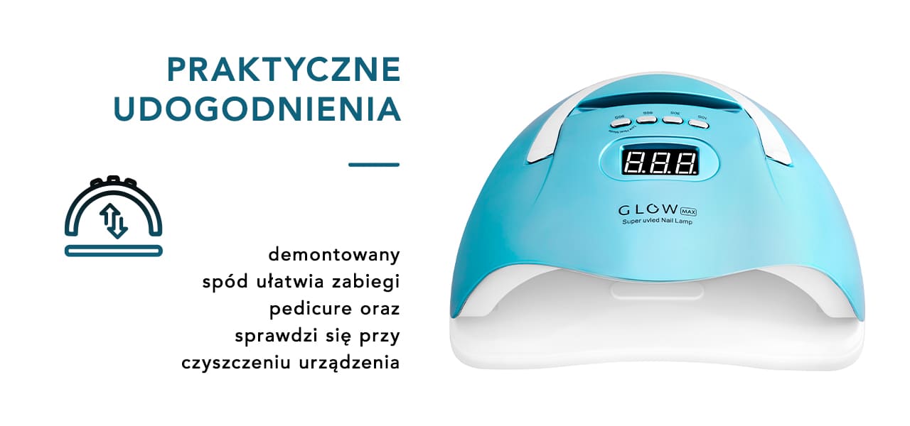 Przydatne funkcje, ergonomiczny kształt oraz wyjątkowy design z lustrzanym, metalicznym wykończeniem w odcieniach turkusu sprawiają, że lampa jest praktycznym, a zarazem niezwykle gustownym elementem wyposażenia salonu. Odpowiednie wymiary pozwalają na komfortowe ułożenie całej dłoni czy stopy pod lampą, co zapewnia równomierne utwardzanie stylizacji.