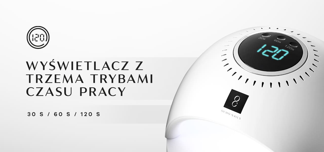 Lampa do paznokci Ocho Nails 8 to urządzenie, które – dzięki wyposażeniu w praktyczne funkcje – pozwala na łatwe wykonanie zabiegów manicure i pedicure przy użyciu lakierów hybrydowych, żeli czy innych preparatów światłoutwardzalnych. Równomiernie rozmieszczone diody LED oraz zastosowana technologia Dual Led gwarantują doskonałe utrwalenie stylizacji paznokci. Minimalistyczny wygląd, prostota obsługi oraz przydatne funkcjonalności sprawiają, że lampa znakomicie sprawdzi się zarówno w użytku profesjonalnym, jak i domowym.