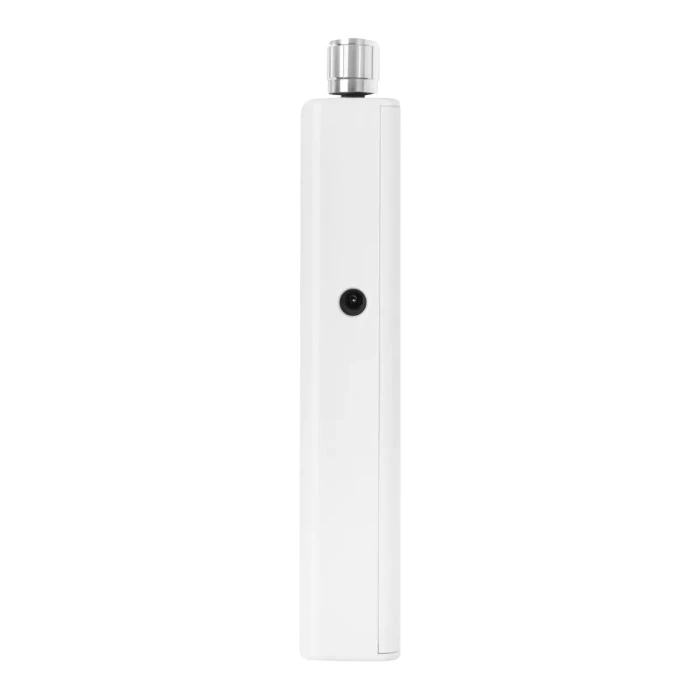 Frezarka wyróżnia się minimalistycznym wyglądem, doskonale wpisując się w estetykę nowoczesnych salonów beauty. Smukła baza w jasnej, neutralnej kolorystyce podkreśla profesjonalny charakter stanowiska pracy, a prosta obudowa z tworzywa sztucznego zapewnia trwałość oraz łatwość czyszczenia. Elastyczny spiralny kabel do głowicy o długości do 220 cm zwiększa swobodę ruchów podczas pracy. Gumowane elementy na spodzie poprawiają stabilność i komfort użytkowania. Kompaktowe wymiary i lekka konstrukcja sprawiają, że urządzenie sprawdza się zarówno na niewielkich stanowiskach, jak i w usługach mobilnych.