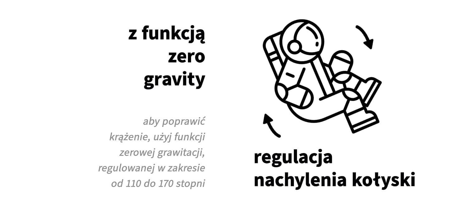 Wybierając tryb ZERO GRAVITY ustawiamy fotel w pozycji, która ma dobroczynny wpływ na organizm. Inspiracją dla tej funkcji jest pozycja, w jakiej znajdują się astronauci podczas startu rakietowego, która ma na celu minimalizowanie nacisku grawitacyjnego na ciało. Polega na ustawieniu fotela w taki sposób, by ciężar ciała był równomiernie rozłożony na całą powierzchnię. Ułożenie takie w znaczącym stopniu redukuje nacisk na kręgosłup, łagodzi napięcia mięśni oraz wpływa na poprawę krążenia krwi i limfy. Uważa się, że jest to najlepsza pozycja do masażu, ponieważ mięśnie są w niej prawdziwie rozluźnione.