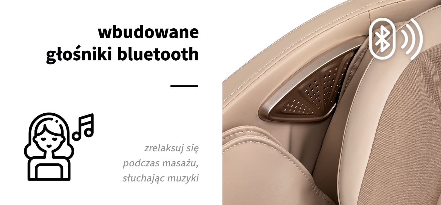Wbudowana funkcja Bluetooth umożliwia połączenie fotela z urządzeniem mobilnym i odtwarzanie ulubionej muzyki podczas masażu. Spokojne dźwięki sprzyjają odprężeniu, poprawiają nastrój i pozwalają oderwać się od codziennych bodźców. Połączenie masażu z terapią dźwiękiem wspiera głębokie wyciszenie oraz regenerację ciała i umysłu, potęgując efekt relaksu.