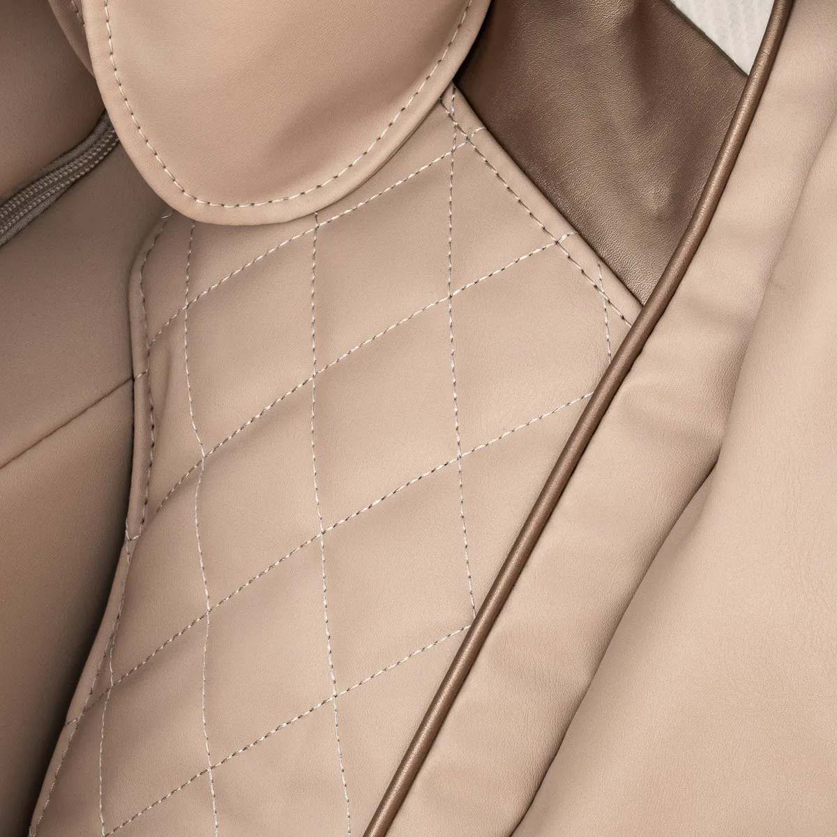 Miękka, przyjemna w dotyku imitacja skóry w odcieniach beżu zapewnia wysoki komfort użytkowania i łatwość pielęgnacji. Materiał jest estetyczny, odporny na wilgoć i praktyczny w codziennym użytkowaniu. Zewnętrzne detale w kolorze rose gold, zestawione ze strukturalnym wykończeniem w odcieniach bieli, nadają fotelowi nowoczesny, stylowy charakter. Kompaktowa forma i stonowana kolorystyka sprawiają, że model doskonale komponuje się z różnymi aranżacjami wnętrz. Sakura Prime 101 to idealna propozycja dla osób poszukujących codziennego odprężenia – zarówno po intensywnym dniu, jak i po wzmożonym wysiłku fizycznym.