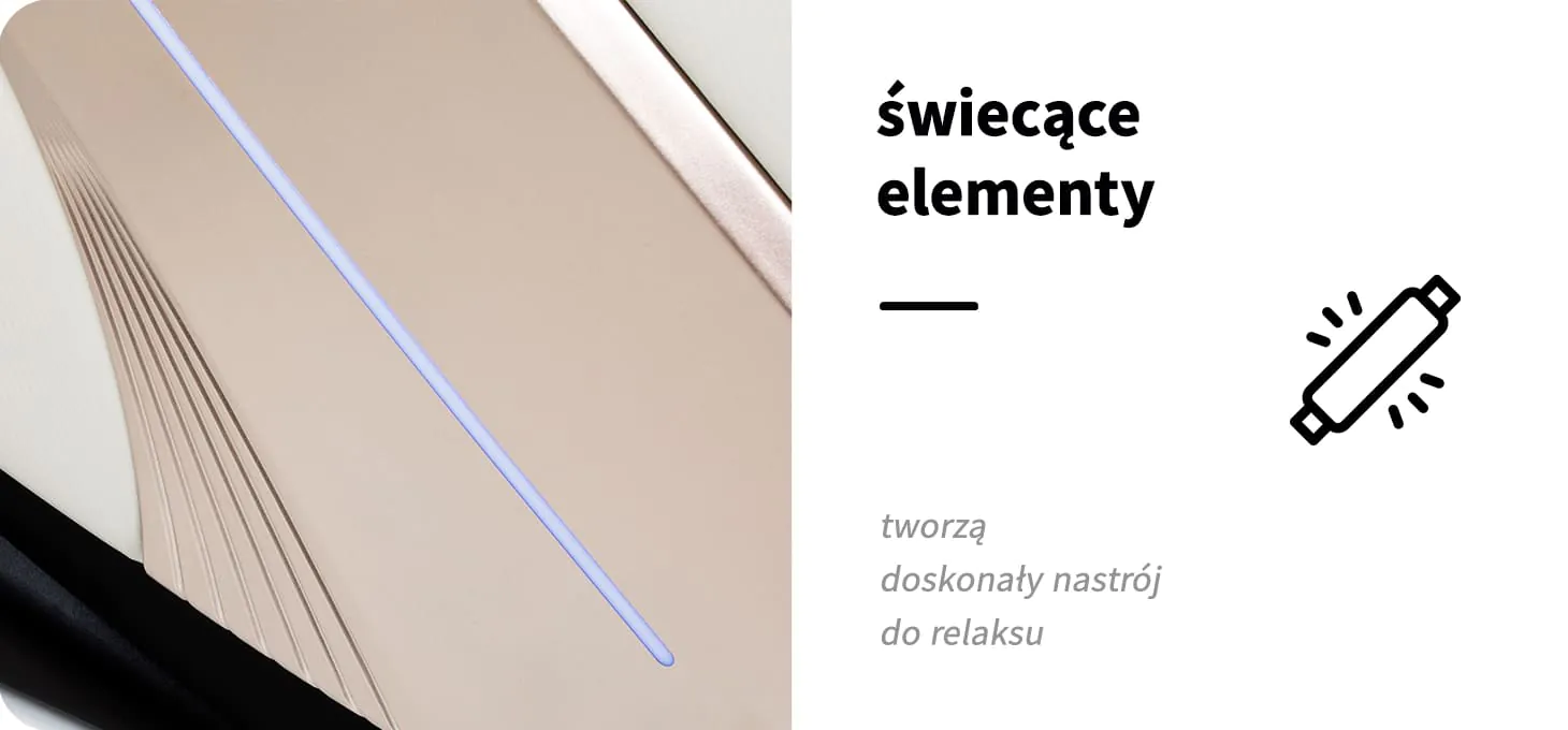 Subtelne podświetlenie bocznych paneli podkreśla nowoczesny design urządzenia i dodaje mu elegancji. Delikatna barwa światła sprzyja wyciszeniu i relaksowi, a jednocześnie wzbogaca estetykę otoczenia. To stylowy akcent dekoracyjny, który przyciąga uwagę i nadaje wnętrzu wyjątkowego charakteru.