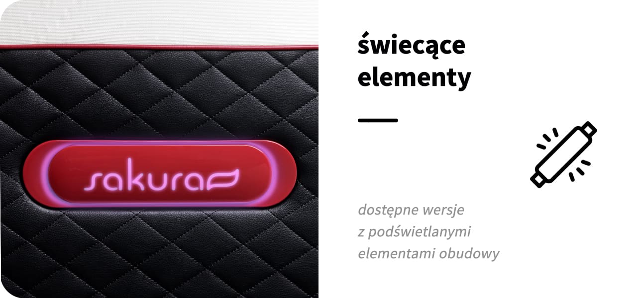 Ciekawą funkcją tego modelu są podświetlane elementy po bokach, które dodają elegancji i tworzą przyjemną atmosferę. Światło o odpowiedniej barwie i intensywności dodaje produktowi nowoczesnego i eleganckiego wyglądu, jednocześnie tworząc doskonałą, nastrojową atmosferę do relaksu. Stanowią również element dekoracyjny, przyciągając wzrok i wzbogacając wystrój pomieszczenia.