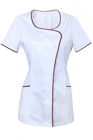 Tunika kosmetyczna SPA 9 biała z brązową lamówką
