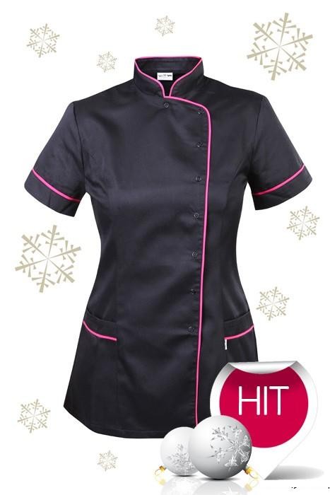Tunika kosmetyczna Spa7 taliowana CZARNA z różową lamówką